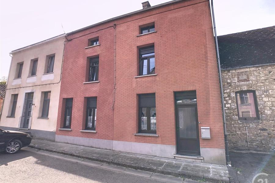 LEVAL-CHAUDEVILLE: Belle maison 2 façades, 3 chambres + possibilité d'une supplémentaire, grand living, cuisine, salle-de-bains au rez-de-chaussée, grenier aménageable, terrasse exposée plein sud sur un terrain arboré et clôturé avec 8 garages d'environ 40 ares, située dans une rue calme à 2 minutes du centre de Beaumont et de toutes les commodités.