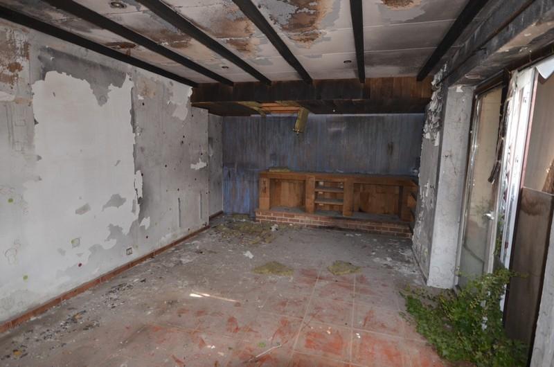 Maison à restaurer (incendiée) avec dépendances, garage et jardinet, située dans une rue commerçante et industrielle, proche du centre de Mariembourg, elle se compose; ss-sol : cave ; rez : vaste séjour (44m²), cuisine (19m²), sdb, buanderie, réserve, chaufferie; étage espace pour 2 chambres et sdb et au 2e étage: espace pour 2 chambres