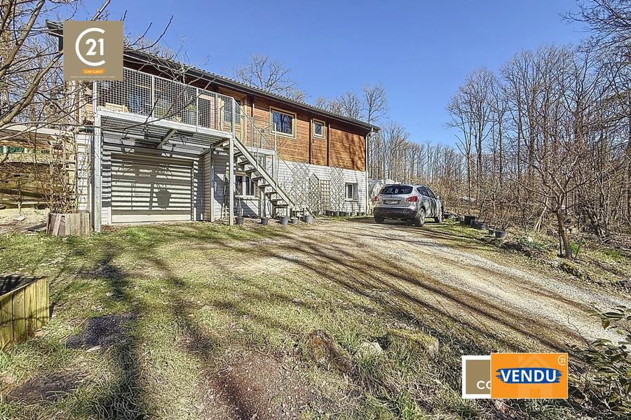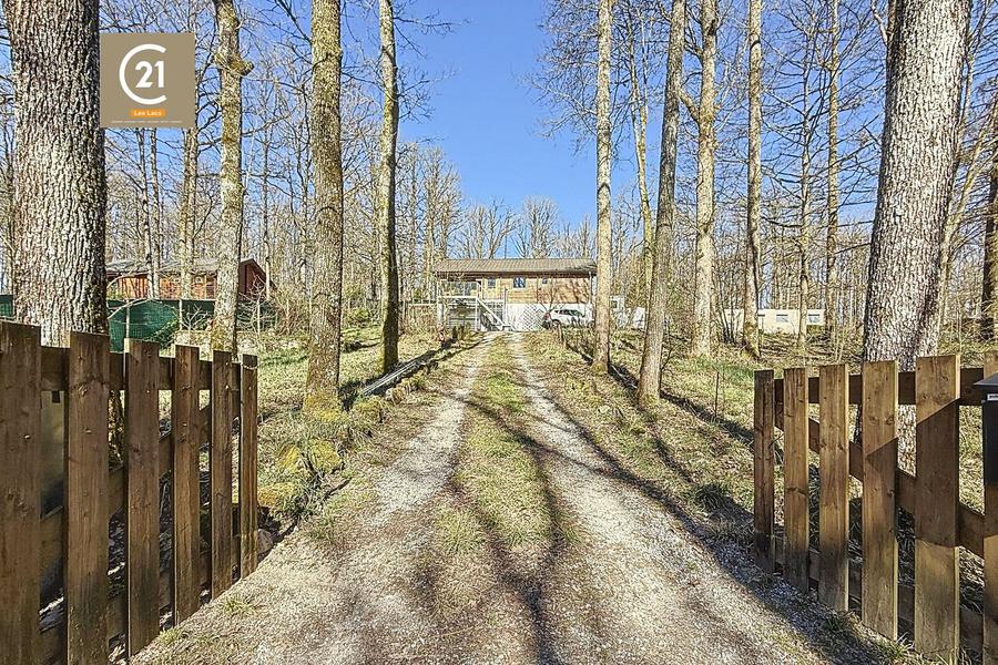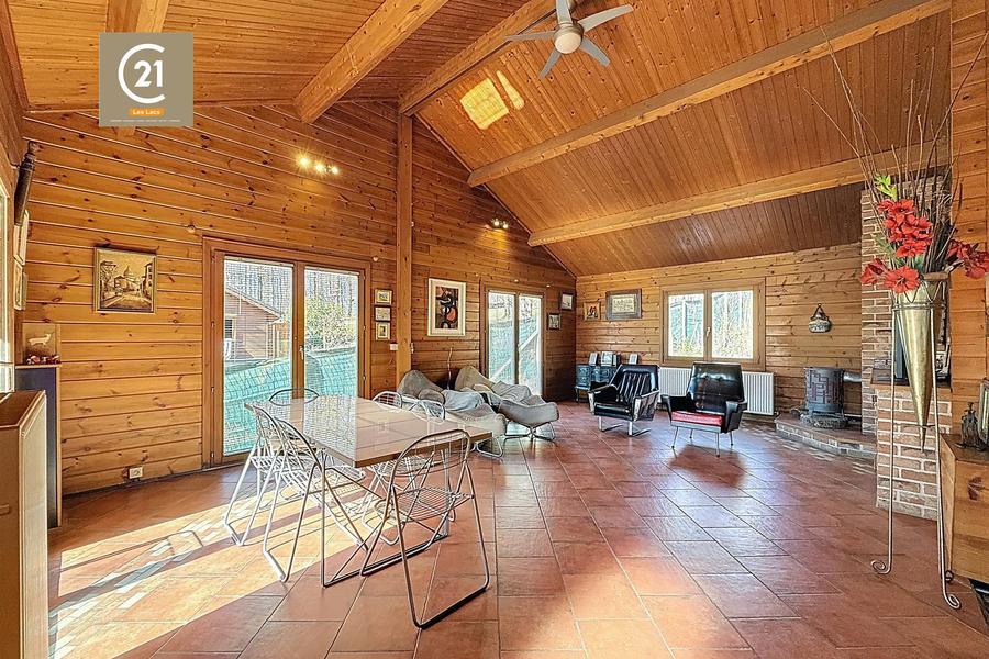 Magnifique Villa Style Châlet composée de 2 chambres, living, cuisine, salle de douche, bureau, garage, atelier sur un terrain arboré de 34 ares située à Neuville dans un cadre bucolique entre Philippeville et les Barrages de L' Eau d' Heure.