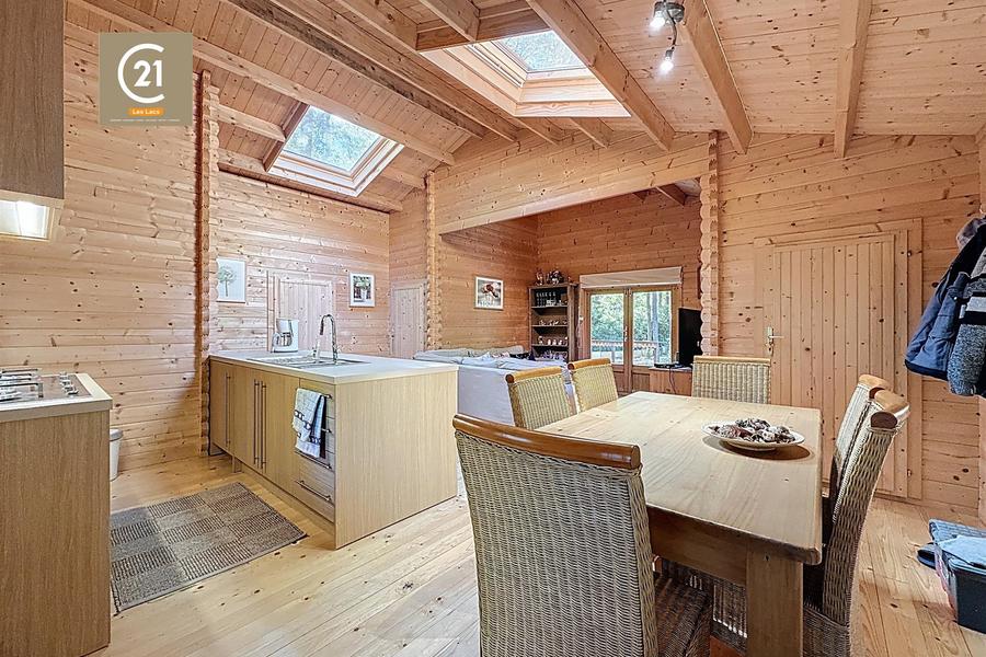 Magnifique Châlet composée de 3 chambres, living avec cuisine ouverte, salle de douche, buanderie, Cave de 60m²,Car Port, abri de jardin sur un terrain arboré de plus de 12 ares située à Neuville dans un cadre bucolique entre Philippeville et les Barrages de L' Eau d' Heure.