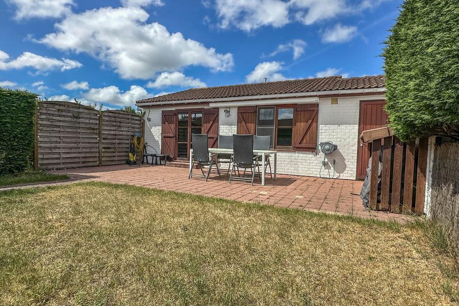 Cette maison de vacances parfaitement entretenue est située dans un domaine à petite échelle, très calme, à distance de marche de la plage, de la mer et des dunes. L’endroit idéal pour se détendre !Elle se compose d’un séjour lumineux avec poêle à pellets, d’une cuisine entièrement équipée, de deux grandes chambres, d’une salle de bains avec deuxième toilette et de toilettes séparées. Une buanderie pratique offre de la place pour une machine à laver, un sèche-linge, des meubles de jardin ou encore des vélos.À l’extérieur, vous profitez d’une large terrasse ensoleillée, d’un jardin orienté plein sud, d’un abri de jardin de qualité et d’un emplacement de parking privé.Une résidence secondaire idéale ou un investissement sans souci à la côte !