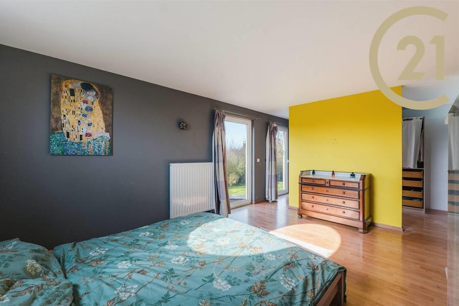 Dans un véritable havre de paix, venez découvrir cette villa lumineuse idéalement implantée sur un magnifique terrain de près de 39 ares à l'abri des regards. Parfaitement intégrée et connectée à son environnement, vous serez séduit par ses espaces ouverts et fonctionnels, donnant sur un magnifique jardin arboré et privatif. Avec 201 m² habitable, la maison propose trois chambres spacieuses et deux salles d'eau. La cuisine équipée avec ilot central, l'espace de vie baigné de lumière naturelle grâce à ses larges baies vitrées et un bureau avec foyer au bois développent près de 90m2 et permettent de nombreuses possibilités d'utilisation et d'aménagement. De vastes terrasses et un carport donnant accès à un double garage et atelier complètent de fort belle manière cette villa contemporaine idéalement orientée. Moyennant autorisation, l'espace garage offre de belles possibilités d'aménagements en espace professionnel ou en espace de vie indépendant. Informations et demande de visite ? Contactez-nous au 081/61.2000 - CENTURY 21 Immo Demeuse