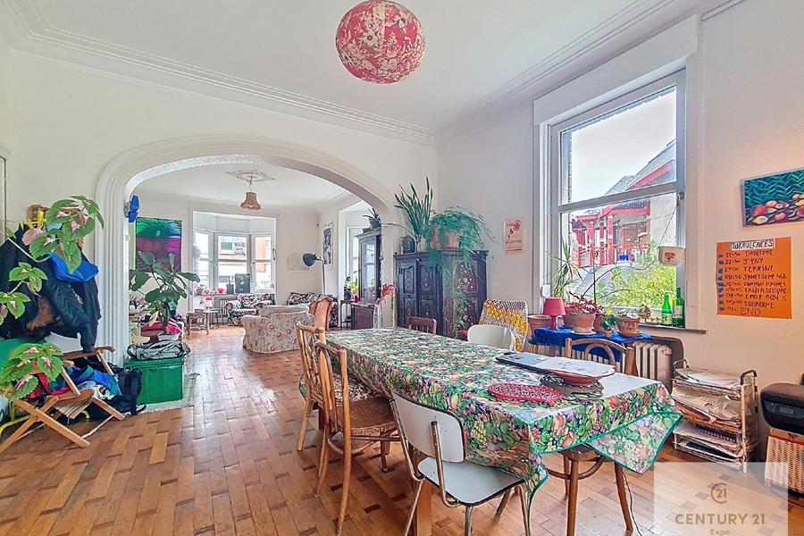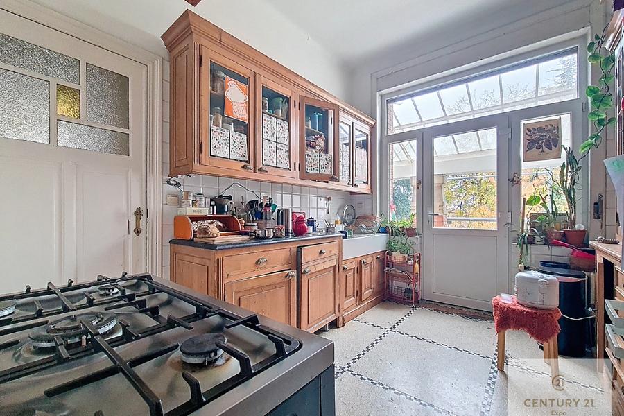 À deux pas de la Place Schweitzer et de toutes ses commodités (commerces, écoles, transports, accès rapides), CENTURY 21 Expo vous invite à découvrir cette superbe maison de maître, parfaitement entretenue et ayant conservé tout son charme d’époque (vitraux, volumes généreux, éléments authentiques). Offrant ± 300 m² habitables, elle se compose notamment de : Rez-de-chaussée Hall d’entrée avec cachet Lumineux séjour de ± 50 m² Cuisine équipée avec accès direct au jardin WC séparé Étage 1 & 2 5 spacieuses chambres à coucher Salle de bains + douches Espaces de circulation confortables Sous-sol & annexes Double garage + parkings extérieurs Cave et espaces de rangement Extérieurs Splendide jardin verdoyant agrémenté d’un étang, véritable havre de paix Atouts supplémentaires Installation électrique conforme Chaudière au gaz récente Charme et authenticité préservés (vitraux, finitions d’époque) Volumes exceptionnels et luminosité Installation d’eau de pluie fonctionnelle alimentant les deux WC existants, avec une prévision complète (canalisations déjà installées) pour un WC supplémentaire et une future seconde salle de bains au 2ᵉ étage Situation idéale : quartier résidentiel recherché, proche des facilités et des grands axes. Un bien rare sur le marché, idéal pour une famille à la recherche d’espace et de caractère. Infos & visites : CENTURY 21 Expo – 02/476.21.21 – info@century21expo.be