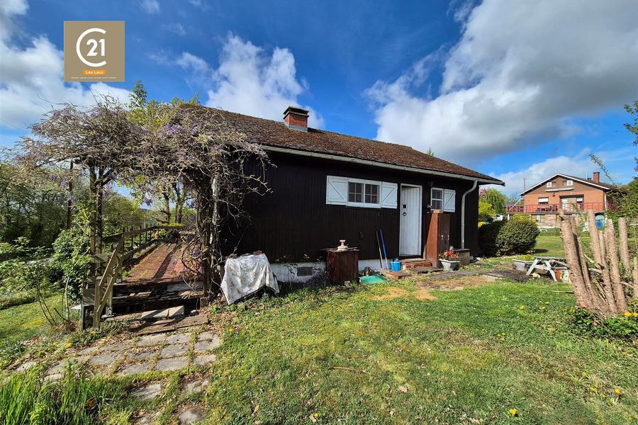 Chalet 4 façades de plain-pied à rénover sur terrain de 9 a80 ca offrant 2 chambres, une cuisine ouverte sur le séjour, salle de douche, ... et un terrain à bâtir de 10 a 40 ca situé dans un quartier calme à deux pas de Philippeville. VENDU MEUBLE. FAIRE OFFRE A PARTIR DE 105.000 EUROS. Sous réserve d'acceptation des propriétaires.