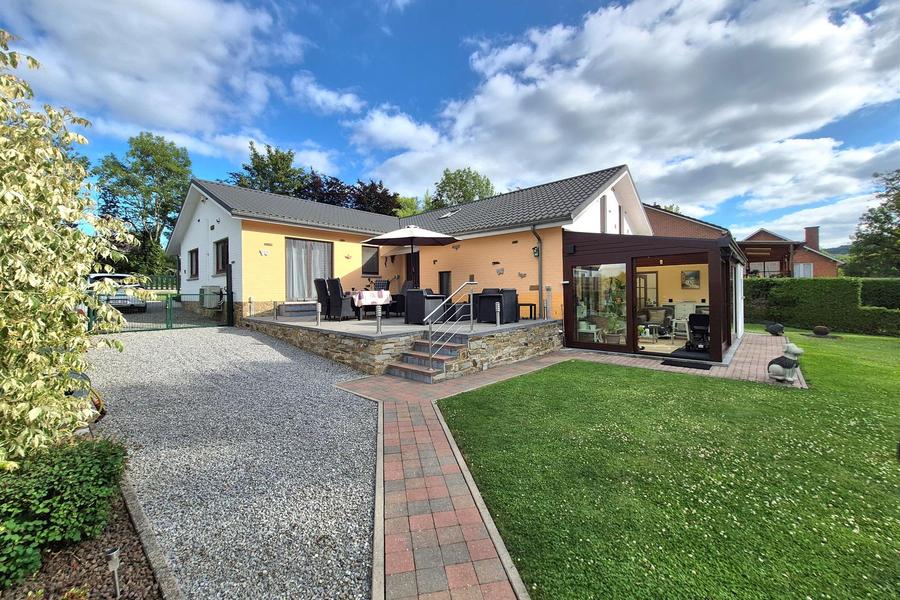 Magnifique Villa 4 façades sur Wépion offrant 3 chambres, un living de 30m², une cuisine équipée, un bureau, un espace buanderie, une véranda, une salle de douche et une salle de bain.