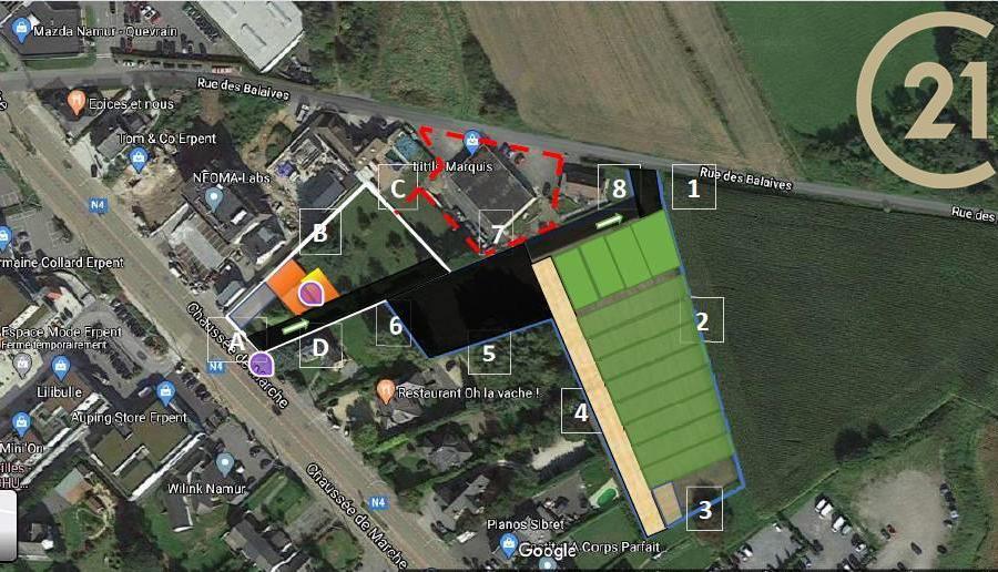 A l'arrière du bâtiment chaussée de Marche 575 à Erpent, terrain de 84 ares à lotir. bénéficiant d'une magnifique vue sur les campagnes, ce terrain a reçu un avis favorable de l'administration de Namur pour la construction d'entre 12 et 15 logements.