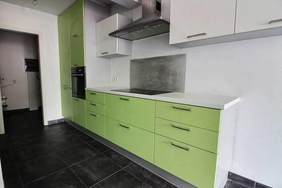 Bestaande uit: 1 inkomhal, een volledig uitgeruste keuken die uitgeeft op een ruime woonkamer, 2 slaapkamers, 1 badkamer, 1 WC, 1 bijkeuken en een overdekte parkeerplaats.