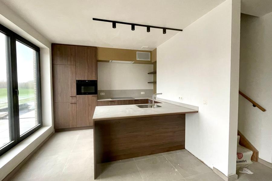 Bij het betreden van het appartement wordt u meteen verwelkomd in een lichtrijke leefruimte met grote raampartijen die zorgen voor een aangename, natuurlijke lichtinval. De open indeling creëert een ruimtelijk gevoel en vormt het hart van de woning. De volledig geïnstalleerde keuken is uitgerust met moderne toestellen en sluit naadloos aan op het terras met prachtig open zicht op de omliggende natuur — ideaal voor gezellige etentjes of een ontspannen koffiemoment in de buitenlucht. Een zeldzame luxe in het centrum van de gemeente.