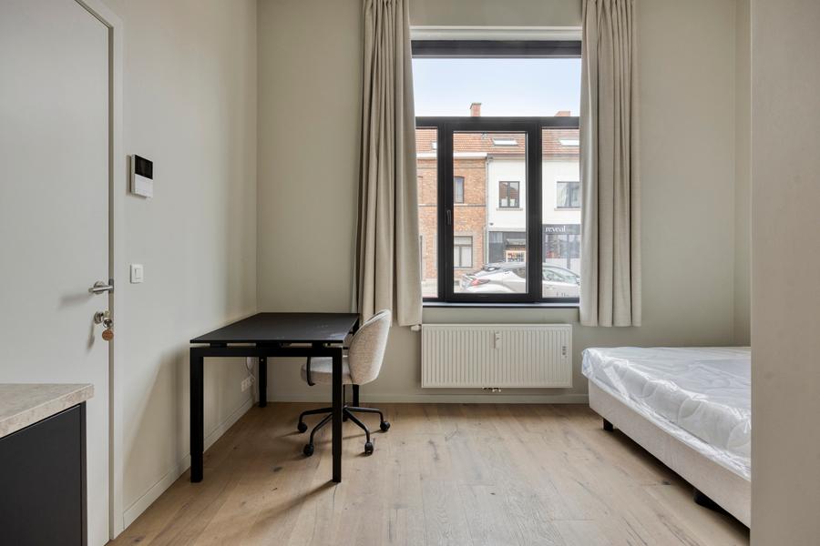 Deze residentie is een vernieuwbouwproject. De renovatie werd uitgevoerd met oog voor detail, kwaliteitsvolle materiaalkeuze en afwerking. De kamer heeft privatief sanitair en is bemeubeld. Bijkomend heeft dit pand een gemeenschappelijke keuken. Kortom, deze residentie heeft het allemaal.
