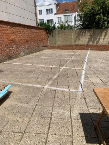 ANDERLECHT: (Réf.00242) A l'arrière du bâtiment via une entrée de garage de 1,83m de hauteur et 2,10m de large, 5 emlacements de parking extérieur (10x5). Possibilité de les couvrir avec une structure légère. Idéal pour parking ou entreposage de matériels. Travaux mécanique interdit. Infos et visites: Century 21 Abitat 02/410.21.21