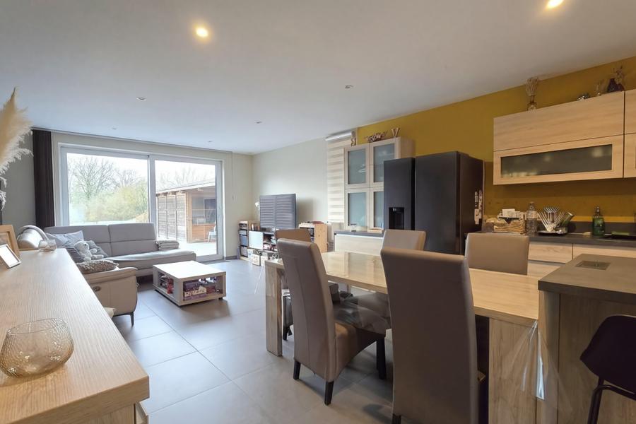 Op de benedenverdieping vinden we de ruime open keuken met aansluitend de woonkamer die toegang geeft tot het ruime terras en de tuin.