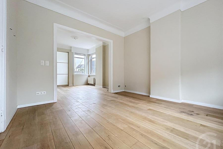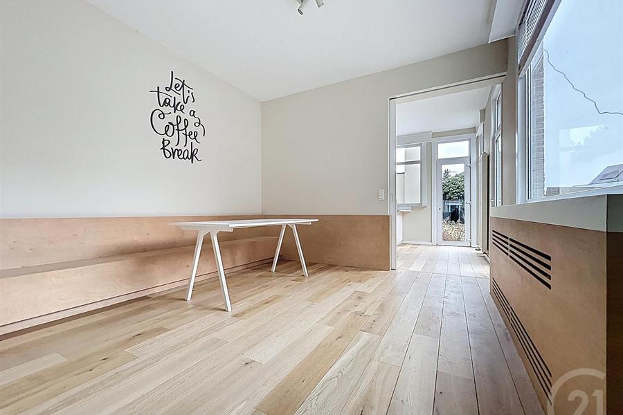 Op het gelijkvloers bevindt zich een ruime en lichtrijke leefruimte. Aansluitend is er plaats voor een eetgedeelte en is er een vlotte doorgang naar de overige leefruimtes. De woning beschikt over een praktische keuken, ingericht voor dagelijks comfort en met zicht op de buitenruimte.