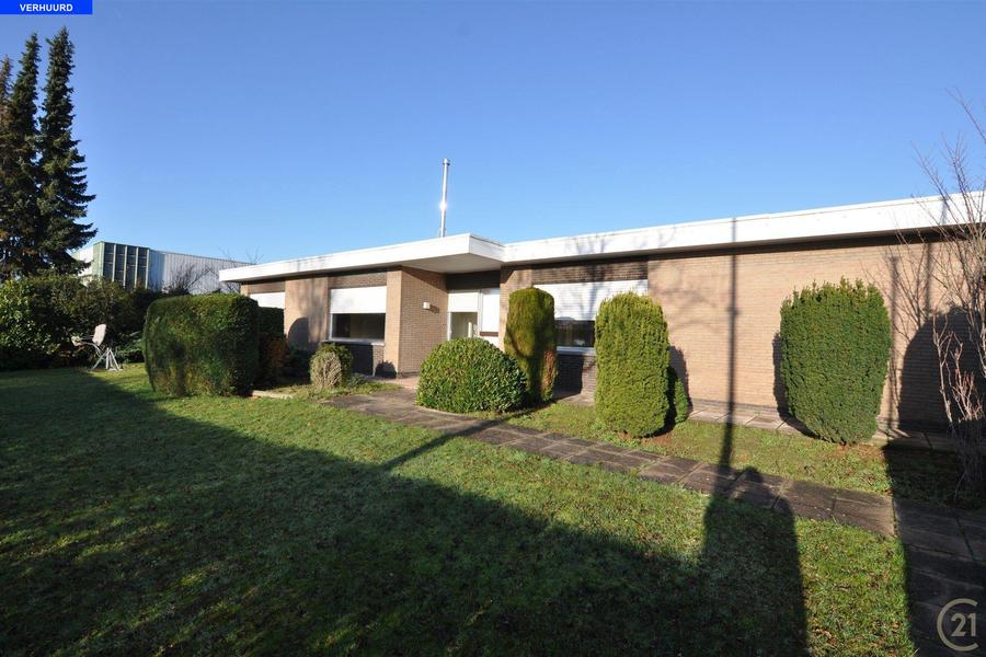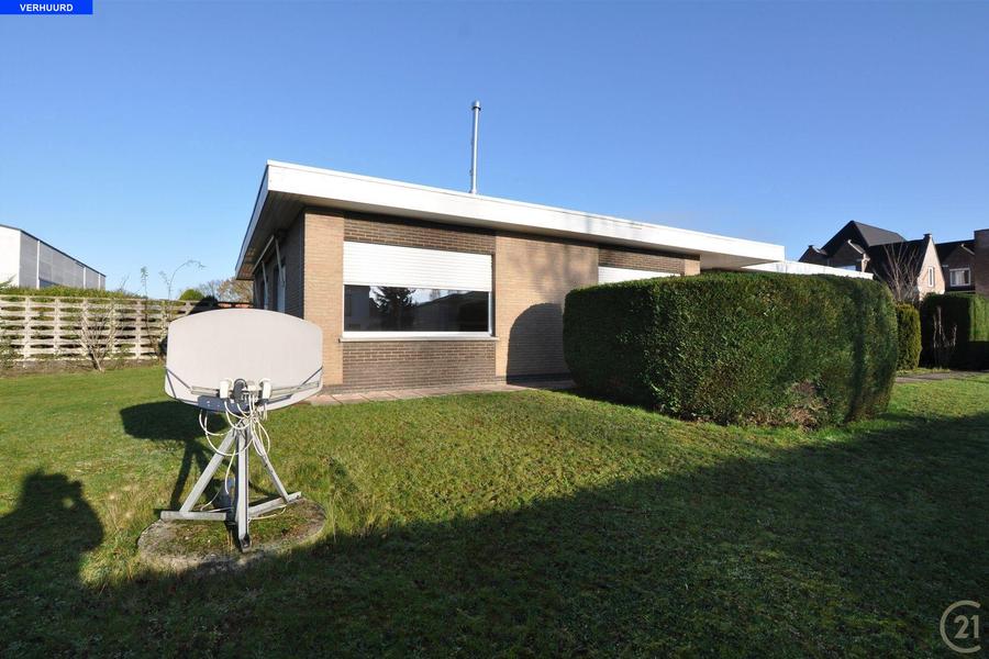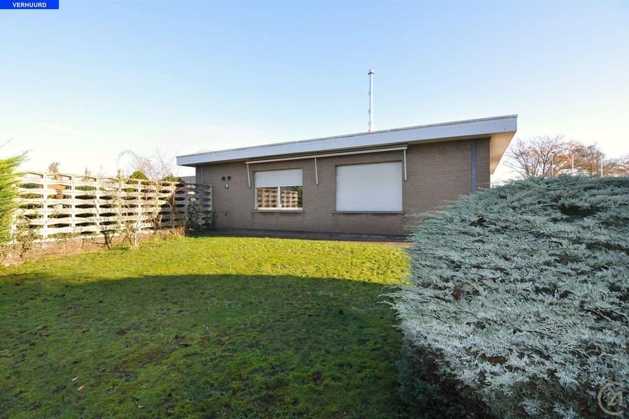 VERHUURD - Heel ruime, vrijstaande woning met grote tuin en dubbele garage en 6 slaapkamers. Alles gelijkvloers. Indeling : ruime inkomhal, leefruimte, leefkeuken, bijkeuken, koele berging, dubbele garage, CV-ruimte, nachthal, 6 slaapkamers, 2 gastentoiletten, badkamer. Oppervlakte terrein ca 1100 m². Uitstekende ligging op wandelafstand van school, sporthal, zwembad, ...
