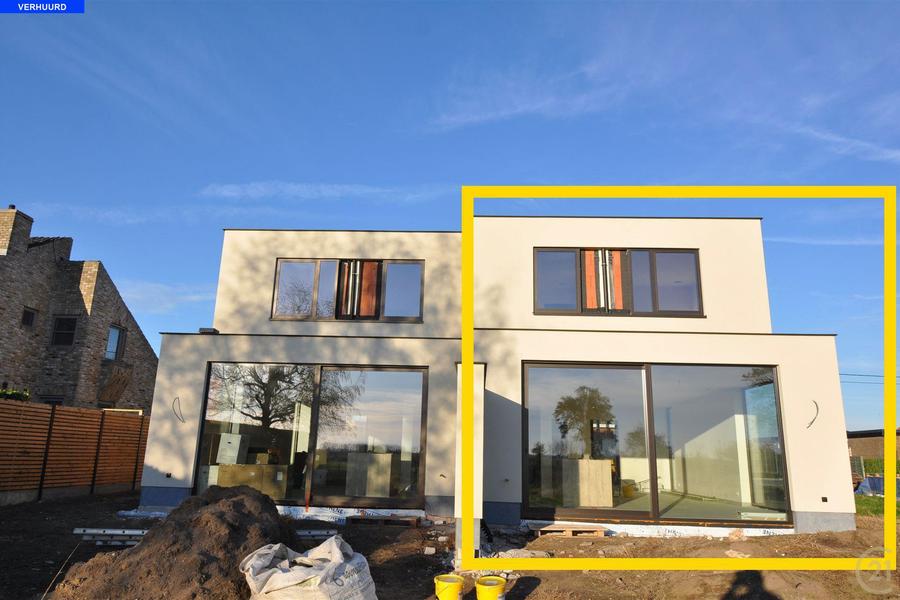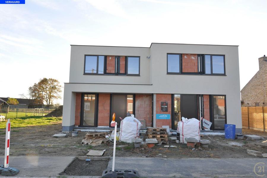 VERHUURD - Splinternieuwe, prachtige en energiezuinige, halfopen woning met tuin en tuinhuis (nog te plaatsen) en een oprit voor de woning. Indeling woning : Op het gelijkvloers bevindt zich de inkom met een gastentoilet, een afzonderlijk bureau, een gezellige leefruimte met een open, ingerichte keuken (met vaatwas, grote koelkast, ...), berging, op de verdieping is er een nachthal, drie slaapkamers waarvan één met dressingruimte, een badkamer (inloopdouche, toilet, lavabomeubel) en een berging. 9 zonnepanelen aanwezig. e-peil 6(!). De tuin wordt nog aangelegd door de eigenaar. Uitstekende ligging op wandelafstand van lagere school, nabij centrum en nabij oprit E403.