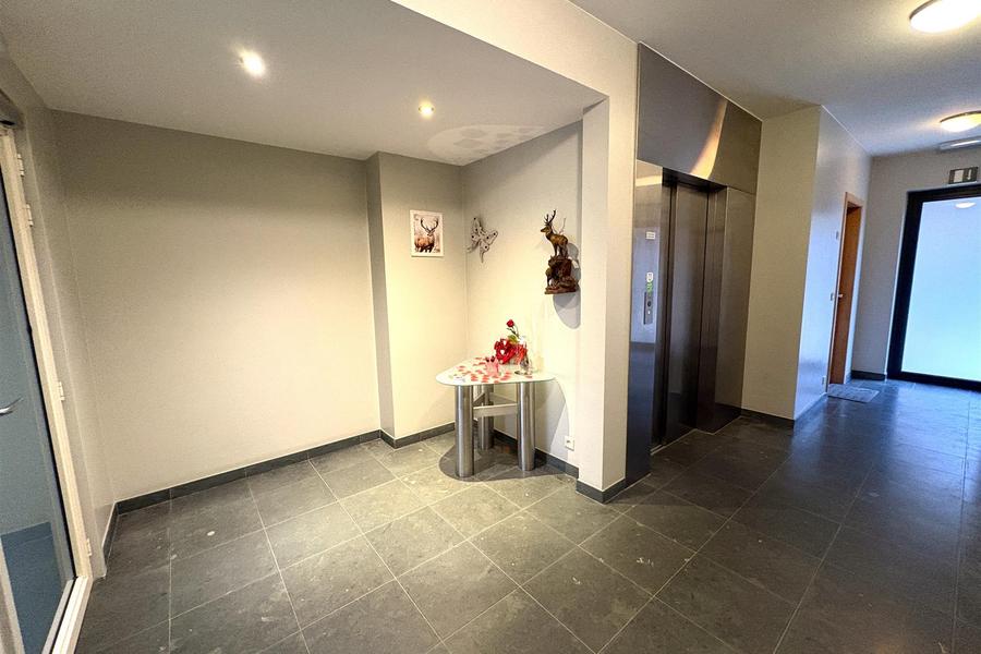De lift brengt ons naar het 2de verdiep waar dit zalig woonappartement ons verwelkomt.