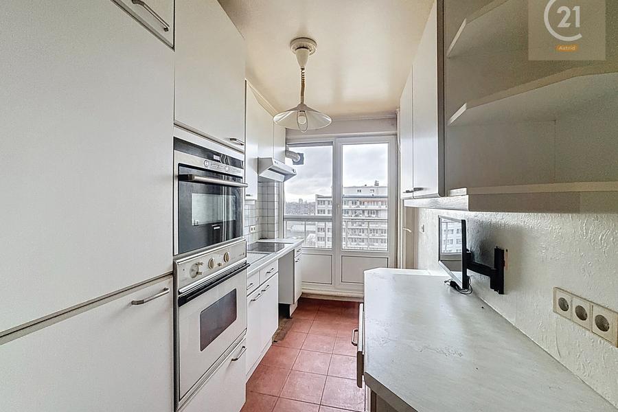 Gelegen op de 12de verdieping van een gebouw met 12 verdiepingen, bestaat het appartement uit: bij de ingang toegang tot de hal en de aparte, ingerichte keuken van ca. 7 m². De woon- en eetkamer vormen één geheel en zijn zeer licht. Vanuit de woonkamer heeft u toegang tot het terras van ca. 12 m² met een mooi uitzicht op het Kanaal. Aan de achterzijde van het appartement bevinden zich de eerste slaapkamer van ca. 10 m², de tweede slaapkamer van ca. 12,5 m² en de doucheruimte.