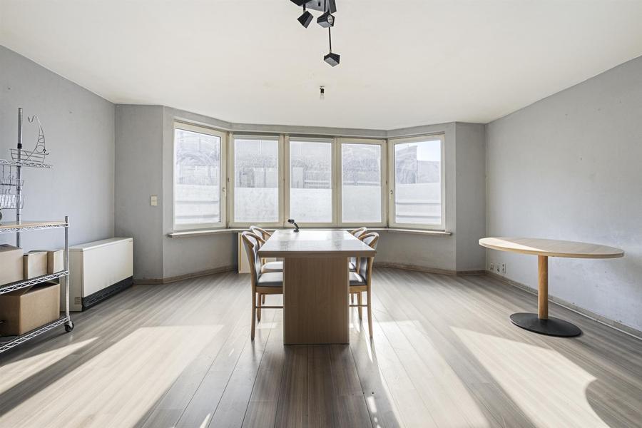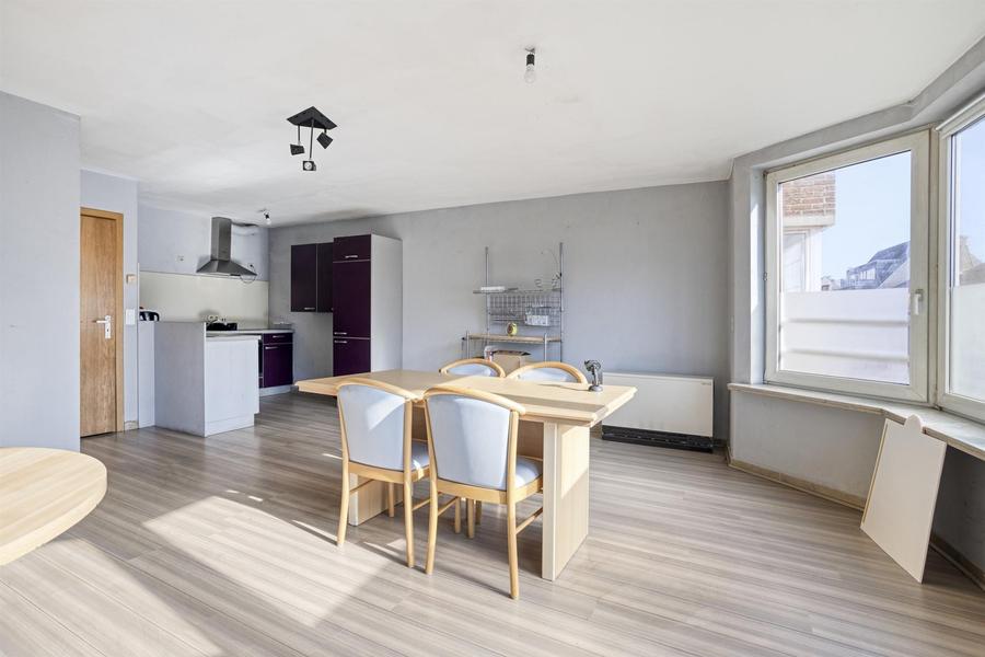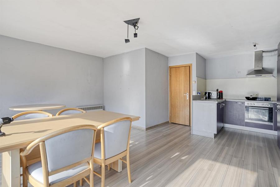 Op de 2e verdieping van deze kleinschalige residentie, vind je dit lichtrijk, op te frissen, 2-slaapkamerappartement. Via de traphal met lift, kom je terecht in de hal van het appartement. De leefruimte ligt vooraan en geniet van een mooie grote raampartij en veel lichtinval. De leefruimte heeft een open keuken. De badkamer ligt centraal en verdient een opknapbeurt. Er is een apart toilet en achteraan vind je 2 slaapkamers, waarvan 1 groot en 1 klein. Er is achteraan een balkon/terrasje voorzien waar je kan genieten van de avondzon.
