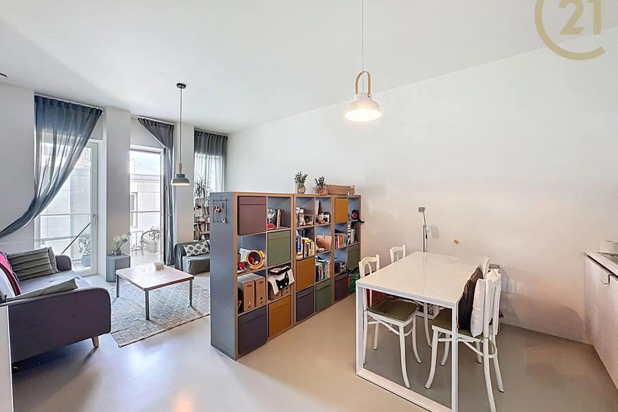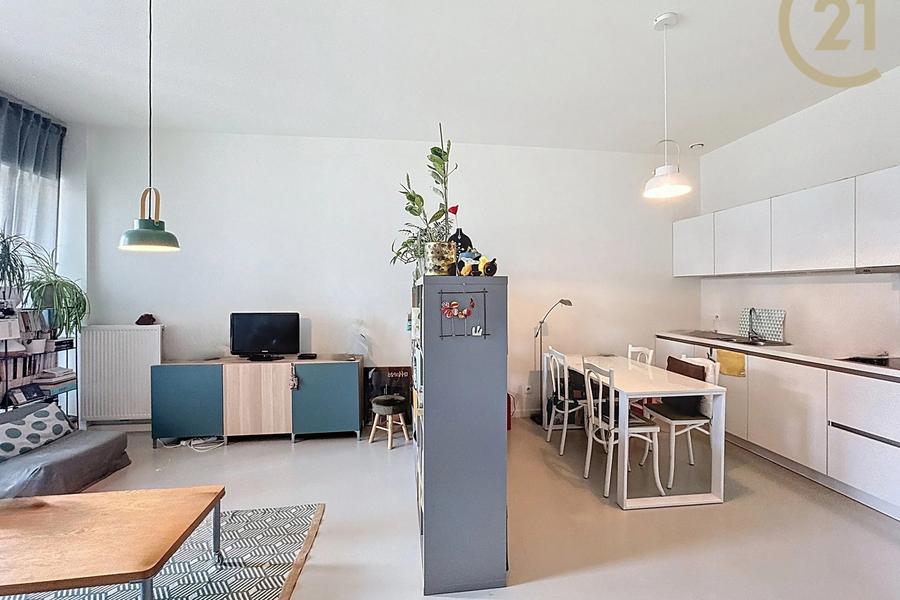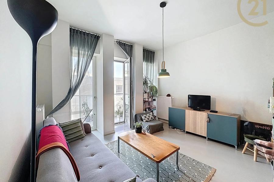 Het appartement bestaat uit een ruime en lichte leefruimte van ongeveer 30 m², een volledig uitgeruste keuken, een ruime slaapkamer van ongeveer 14,5 m² en een douchekamer van ongeveer 3 m². Het geniet van een uitstekende EPC-score B, een conforme elektrische installatie, PVC-ramen met dubbele beglazing en een dubbelstroomventilatiesysteem dat zorgt voor optimale thermische en akoestische isolatie.