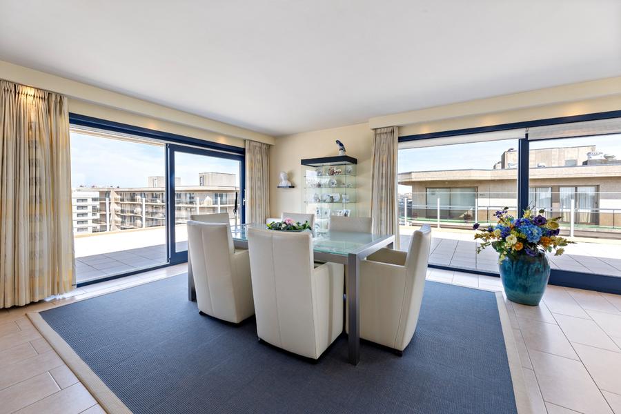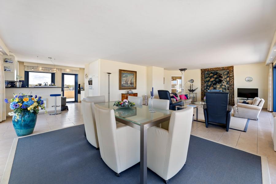 Uniek penthouse gelegen op een zucht van het strand en op enkele minuten van het centrum van De Panne. De zeer ruime (200m²) en zongerichte terrassen bieden U de mogelijkheid om te genieten van de zon van ’s morgens tot ’s avonds. De indeling is als volgt: inkomhal met vestiaire, toilet, ruime berging, drie mooie slaapkamers, twee badkamers, een zeer ruime en luchtige living, eetkamer, ingerichte keuken. Aan de achterzijde geniet het appartement van prachtig zicht op het hinterland. Mogelijkheid tot aankoop van twee garages (23 & 24), 45.000 euro per stuk. Ref. Topaze 0802