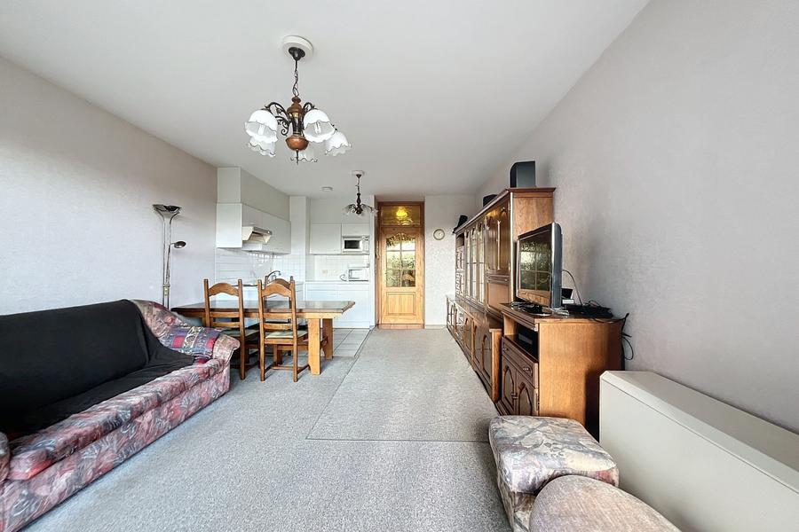 Dit appartement bevindt zich op slechts enkele stappen van zee en 600m van het centrum. De indeling is als volgt: inkomhal, woonkamer, ingerichte keuken, slaapkamer , blinde kamer, badkamer, WC en berging. Er is een terras dat volledig zuid georiënteerd is, alsook een tweede kleiner terras aansluitend aan de slaapkamer. Gemeenschappelijke fietsenberging. Mogelijkheid tot het aankopen van een garage: 50.000 €. Ref Pieter Bortier 301