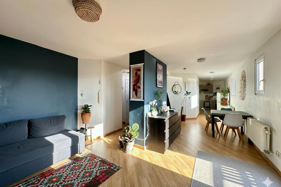 ETTERBEEK: Op een steenworp van het Square Léopoldville, in de wijk Saint-Antoine, prachtig appartement van +/- 63m² (volgens EPC) met 1 slaapkamer/balkon, gelegen op de 5de en bovenste verdieping van een kleine mede-eigendom zonder lift. Het appartement is als volgt ingedeeld: een inkomhal van +/- 3m², een woonkamer van +/- 22m² met toegang tot het balkon van +/- 7m², georiënteerd op het zuidoosten, een keuken van +/- 4m², een slaapkamer van +/- 19m² met toegang tot het balkon en een badkamer van +/- 3m². Kelder inbegrepen. Appartement gerenoveerd. Momenteel verhuurd. EPC G (519 kWh/m²/jaar, 119 kg CO2/m²/jaar). Stedenbouwkundige inlichtingen aangevraagd op 13/02/2026.