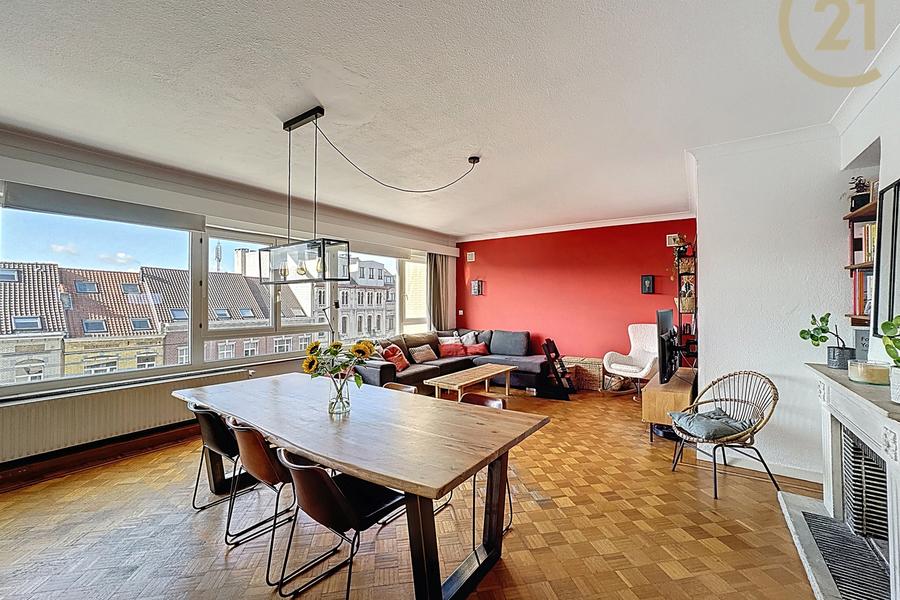 Op enkele passen van het Dudenpark en alle voorzieningen ontdekt u dit prachtig appartement met 2 slaapkamers op de vijfde verdieping van een goed onderhouden gebouw. Vanaf het moment dat u binnenkomt, wordt u verleid door de overvloed aan licht en de royale ruimtes die dit pand kenmerken. De leefruimte van ±38m² biedt een gezellige en warme sfeer, aangevuld met een open keuken van ±10m², in 2022 met smaak en stijl gerenoveerd en volledig uitgerust voor optimaal comfort.