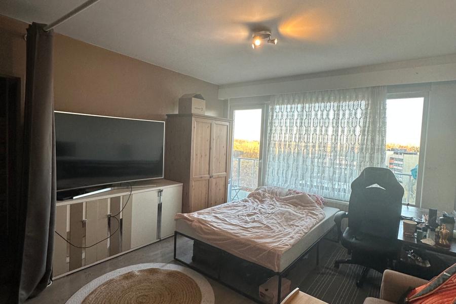 Ganshoren: (ré:2285bis): Avenue Van Overbeke: Century21 vous propose un appartement situé au 9ième étage composé comme suit : hall d'entrée, séjour, terrasse, cuisine équipée, hall de nuit, salle de douche, 1 chambre avec volet électrique ainsi qu'une cave. Double vitrage. Peb en cours,, Infos et visites : 02/523 32 16