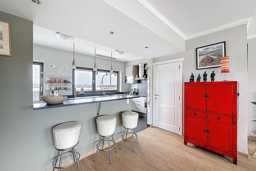 GANSHOREN (REF: 9990) Vlakbij winkels, openbaar vervoer en het zwembad van Ganshoren, aan het Place Reine Fabiola, op de bovenste verdieping van een goed onderhouden residentie, prachtig penthouse van ±136 m² met veel ruimte, veel lichtinval en een uitzonderlijk buitenterras. Privé-lift die rechtstreeks naar het appartement leidt. Ruime en lichte woonkamer van 68 m² met open haard, grote ramen die toegang geven tot twee terrassen. Een eerste terras van 70 m² op het zuiden en een tweede terras van 30 m² aan de achterzijde. Open en volledig uitgeruste keuken. Twee mooie slaapkamers van 16 m² en 14 m² met mogelijkheid voor een derde slaapkamer van 10 m², badkamer + doucheruimte, 2 toiletten waarvan één apart. Veel opbergruimte, dubbele beglazing - 2 kelders - Garagebox optioneel: 39.000 €. Een zeldzaam pand dat u zeker zal bekoren! Info & bezichtigingen: Century 21 Miroir – 02/424.21.21