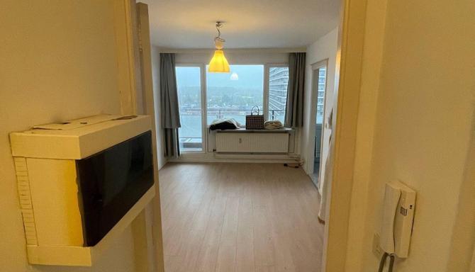 Lichtrijke studio met zeer zonnig terras op de 11de verdieping in de nabijheid van de Groene vallei. Deze studio omvat een inkom hall, een living ,slaaphoek, een aparte keuken , badkamer met douche en apart toilet,, terras en kelder. Dubbele beglazing PVC. EPC 139.