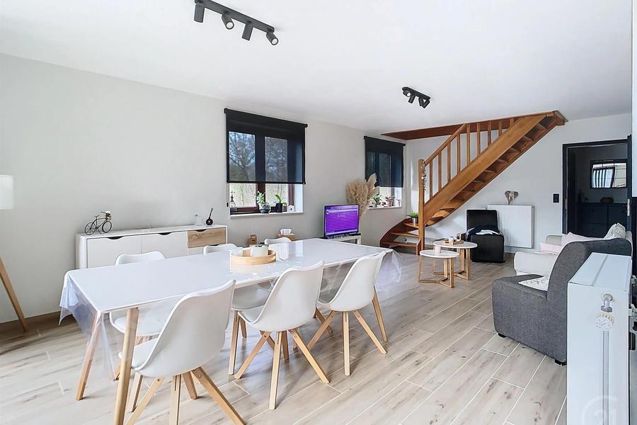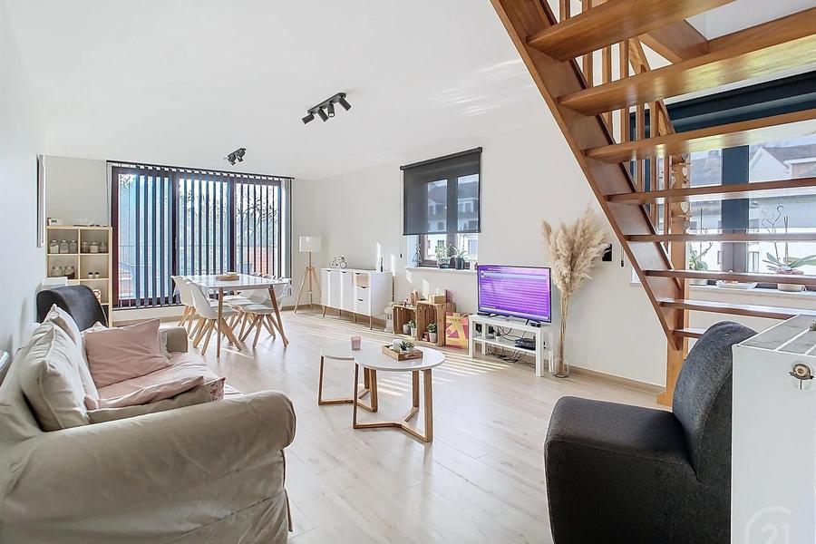 Schitterend duplex appartement met 3 slaapkamers, woonkamer, keuken, hal, bijkeuken, badkamer, 2 aparte wc's, nachthal, kelder, terras, overdekte parkeerplaats gelegen in Gozée en dicht bij winkels, scholen, bussen, enz.