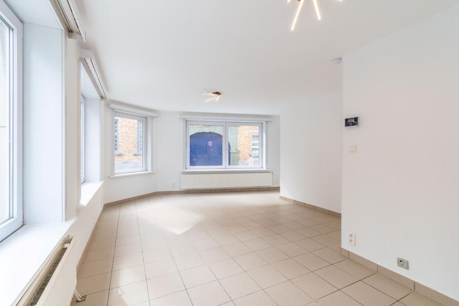 Op het gelijkvloers: inkomhal, ruime living en nieuwe ingerichte keuken (samen 32.45m²), berging;