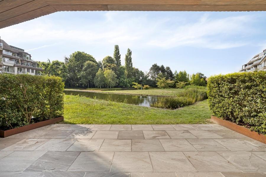 Dé blikvanger? Het adembenemende panoramisch zicht op de sierlijke vijvers en de weelderige parktuin – een groene oase van stilte en schoonheid, volledig vrij van inkijk. Binnen weerspiegelt het interieur dezelfde verfijning. Elk detail is doordacht: van op maat gemaakte inbouwkasten met geïntegreerde verlichting tot de exclusieve afwerking.