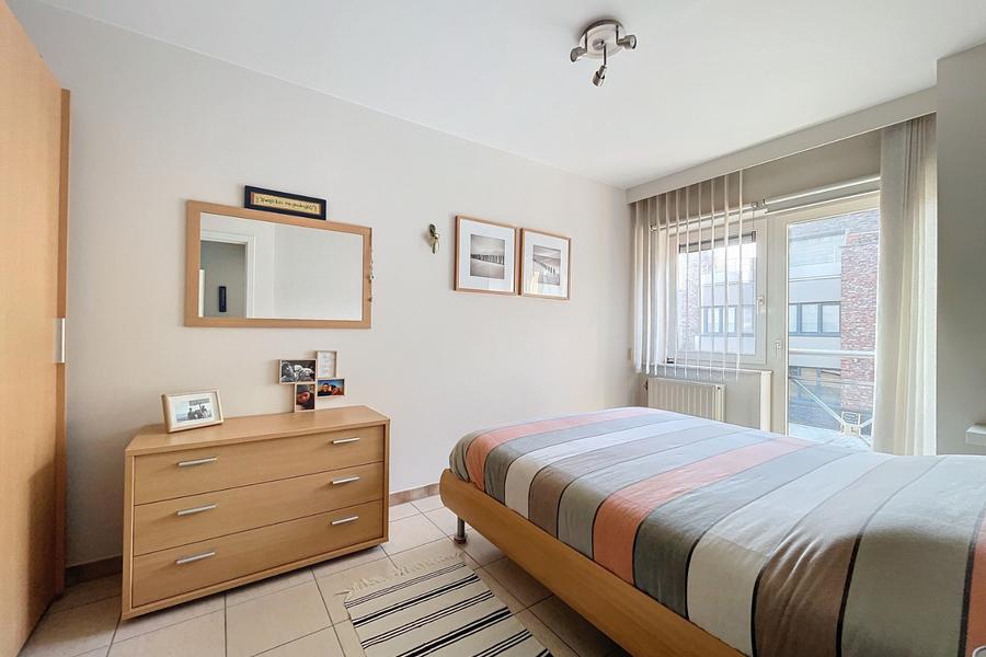 Zongericht en bemeubeld appartement met ruim terras gelegen nabij alle winkels en op wandelafstand van het strand. Het appartement ligt op de eerste verdieping en bestaat uit: inkom, living met eetkamer, ingerichte keuke, ruime terras, toilet, badkamer, berging en twee slaapkamers met ingemaakt kasten. Inclusief private kelder. Mogelijkheid tot aankoop ondergrondse parkeerplaats (30.000 euro). Ref. Together 0101