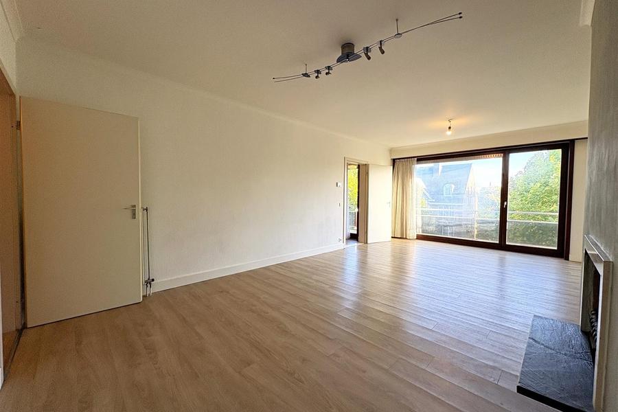 De inkom met vestiaire nis en toilet vormt de verbinding tussen woon- en slaapgedeelte. De leefruimte heeft mooie afmetingen, het grote glasraam zorgt er voor een aangenaam buitencontact.