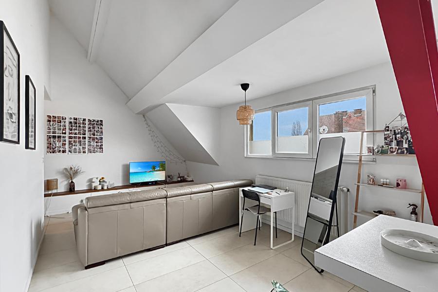 Wijk Pagodenlaan / Kruisvuurlaan, CENTURY 21 De Wand stelt u met plezier deze charmante duplex voor, gelegen op de 4e verdieping van een klein gebouw met lift. Ideaal gelegen in een gegeerde buurt van Laken biedt dit pand een comfortabele, lichtrijke en bijzonder aangename woonomgeving. Dankzij de gunstige oriëntatie geniet het appartement van veel natuurlijke lichtinval en een warme sfeer. De eerste verdieping bestaat uit een ruime woonkamer met open keuken, evenals een inkomhal met apart toilet. Op de bovenverdieping, ingericht als open space, vindt u een grote slaapkamer, een open badkamer en een tweede afzonderlijk toilet. Kenmerken & uitrusting Bewoonbare oppervlakte: 89 m² EPC: nader te bepalen Momenteel verhuurd, vrij bij akte Ideaal voor: Een koppel Een alleenstaande Een investeerder op zoek naar een modern pand met mooi verhuurpotentieel Een functioneel en lichtrijk appartement in een gegeerde buurt — zeker een bezoek waard. Inlichtingen en bezoeken via: CENTURY 21 De Wand 02/269.32.22 info@century21dewand.be