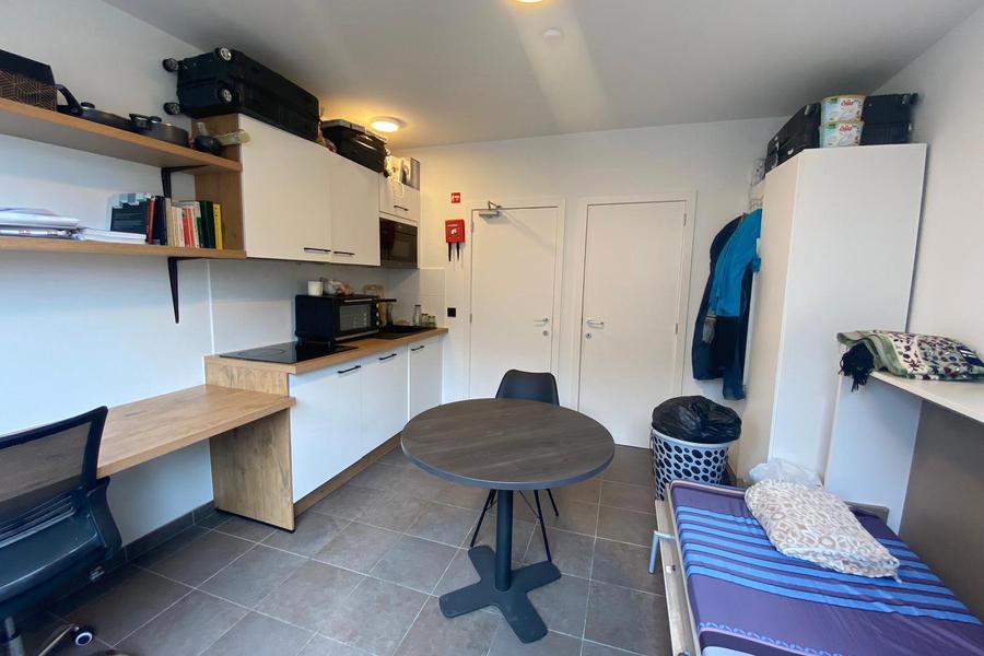 Studio gelegen in de Tiensestraat 127 en dit op de vierde verdieping van het gebouw aan de achterzijde. Deze bemeubelde en gerenoveerde unit is instapklaar en omvat het volgende: uitklapbaar bed, privatieve badkamer en kitchenette, kleerkast, bureau en bureaustoel. Verder is er een inpandige fietsenberging. Deze unit is op heden verhuurd!