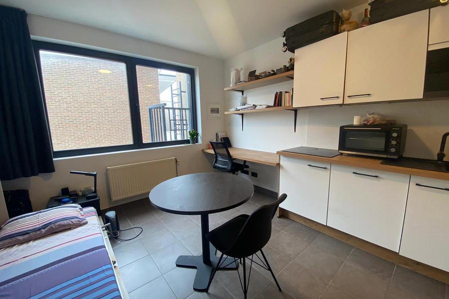 Studio gelegen in de Tiensestraat 127 en dit op de vierde verdieping van het gebouw aan de achterzijde. Deze bemeubelde en gerenoveerde unit is instapklaar en omvat het volgende: uitklapbaar bed, privatieve badkamer en kitchenette, kleerkast, bureau en bureaustoel. Verder is er een inpandige fietsenberging. Deze unit is op heden verhuurd!