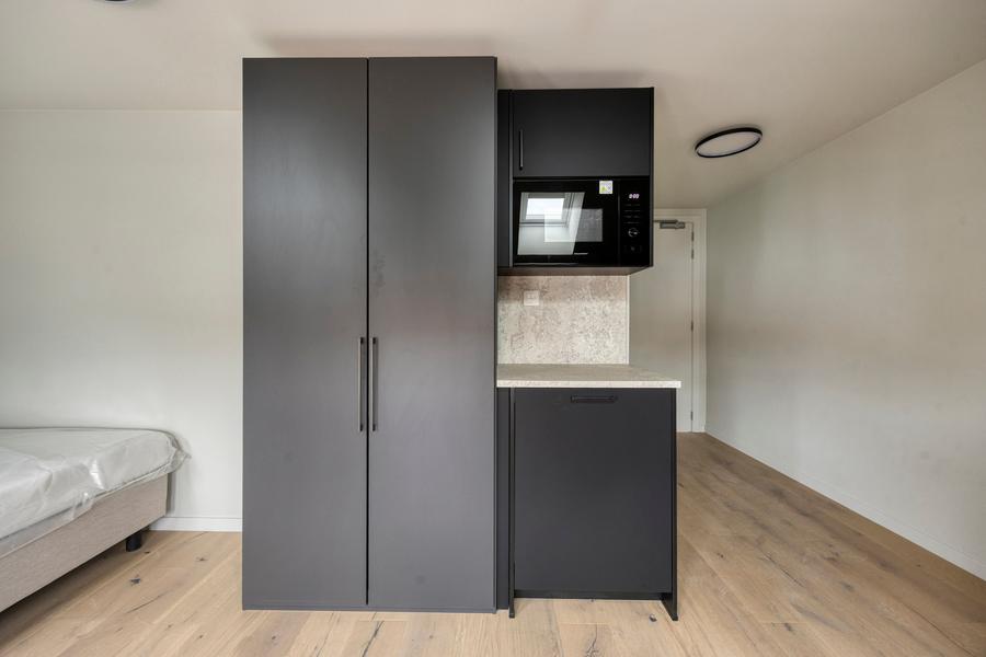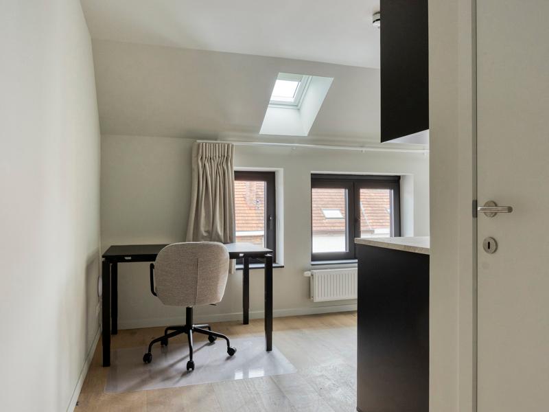 Deze residentie is een vernieuwbouwproject. De renovatie werd uitgevoerd met oog voor detail, kwaliteitsvolle materiaalkeuze en afwerking. Daarnaast voldoet het gebouw aan de strenge energiezuinigheidsnorm van 2025. Deze knusse residentie bestaat uit 5 kamers eigen sanitair en 1 studio met privé tuin. Bijkomend heeft dit pand een gemeenschappelijke keuken. Kortom, deze residentie heeft het allemaal.