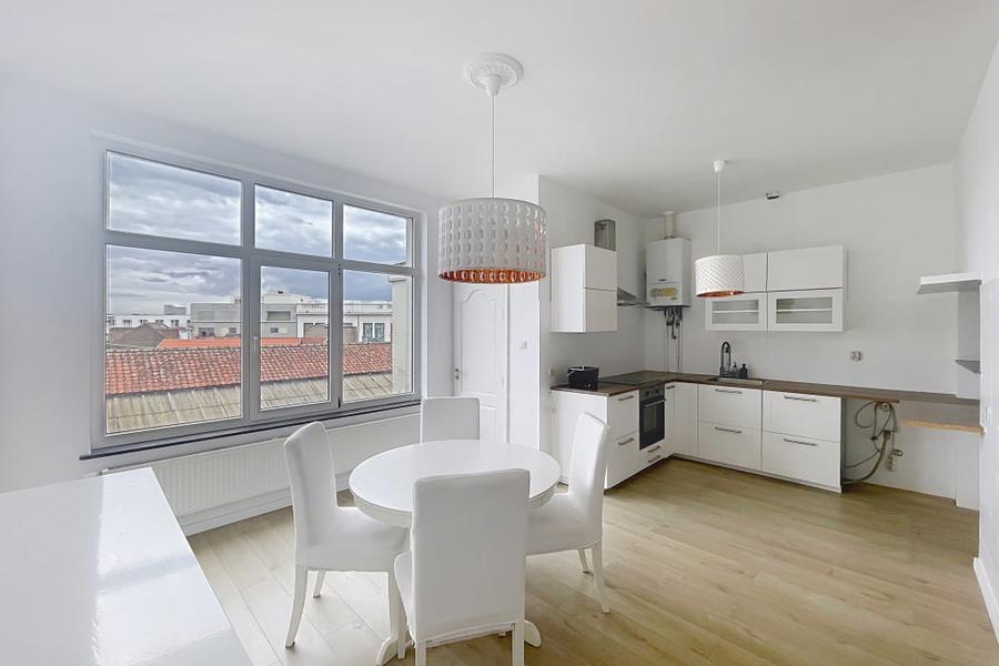 Proche des commerces et de toutes les commodités, charmant duplex/triplex de 4 chambres situé au 3ième/4iéme étage d’une petite copropriété à FAIBLES CHARGES. Il se compose d’un séjour (21m²), une cuisine ouverte donnant sur une salle à mangé (20m²), deux chambres (10m² - 21m²), une salle de bain (5m²), une buanderie (3m²) et d’un balcon (2m²). Le 4ème se compose de 2 pièces (20m² - 25m²), un hall (12m²) et d'un accès vers le toit (sous comble) (35m²). La superficie n’est mentionnée qu’à titre indicatif. PEB : G - A VISITER SANS PLUS TARDER ! - INFOS ET VISITES AU 02/414.21.01