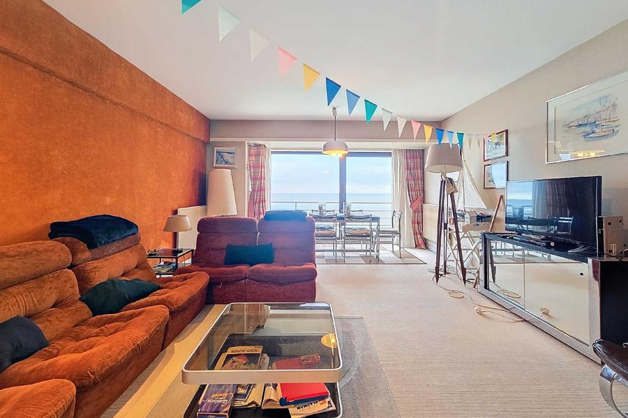 Te renoveren appartement type doorloper met frontaal zeezicht, centraal gelegen op de zeedijk van Nieuwpoort-Bad, op wandelafstand van winkels, horeca en openbaar vervoer.Het appartement omvat een inkomhal, apart toilet, woonkamer met open keuken, een badkamer, een berging en twee slaapkamers, beide met toegang tot een terras aan de achterzijde.Aankoop van een aanpalende studio van ca. 27 m² €130.000. Daarnaast bestaat ook de mogelijkheid tot aankoop van een enkele garagebox op niveau -1.In de kelderverdieping is een gemeenschappelijke fietsenberging aanwezig.