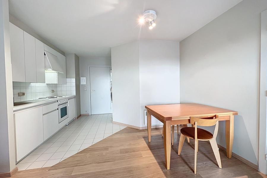 Appartement op toplocatie nabij Groendyk, centraal gelegen op de achterzijde van de Zeedijk te Nieuwpoort-bad nabij de winkels en restaurants.Indeling: inkom, woonkamer met open keuken uitgevend op het zuidgericht terras, één slaapkamer, badkamer met douche, enkele lavabo en toilet.Gemeenschappelijke fietsenberging aanwezig. Het appartement wordt gemeubeld verkocht en er is de mogelijkheid tot het aankopen van een ondergrondse garagebox op -2 niveau.Dit appartement is ideaal als 2e verblijf.