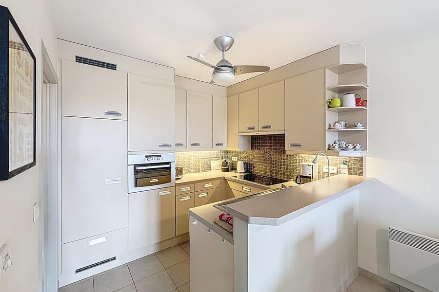 Dit ruime tweeslaapkamer appartement met groot terras (zuidoriëntatie) is gelegen tussen Nieuwpoort-Bad en Nieuwpoort-Stad. Met de tram bent u in vijf minuutjes aan zee. Het appartement heeft een open zicht en een schuifraam, wat zorgt voor veel lichtinval en een ruimtelijk gevoel.U komt het appartement binnen via een ruime inkomhal. Daarna bereikt u de eetruimte, die overloopt in de leefruimte. Er is een open keuken met aangrenzende berging. Vanuit de leefruimte heeft u toegang tot het terras. Wanneer u vanuit de inkomhal de andere kant op loopt, komt u bij de twee slaapkamers. Beide slaapkamers zijn ruim en beschikken elk over een aansluitende badkamer. Eén van de slaapkamers heeft eveneens toegang tot het terras. Verder is er op de gang nog een apart toilet.Inclusief privatieve kelder op de -1.Mogelijkheid tot aankoop garage in dezelfde Residentie.