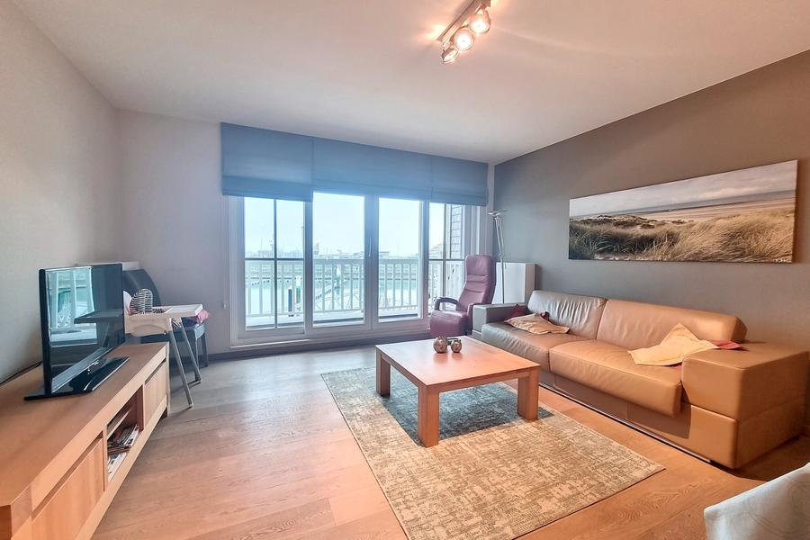 Instapklaar appartement op toplocatie aan de oude jachthaven met zicht op de vaartgeul en wandelpromenade van Nieuwpoort op 2,5 km van de zee. Indeling; inkomhal, apart toilet, lichtrijke woonkamer met open keuken, ruim terras met zicht op de jachthaven, aparte berging, 2 slaapkamers waarvan één met toegang tot het 2e terras, badkamer met ligbad en lavabomeubel.Mogelijkheid tot het aankopen van een enkele garagebox in hetzelfde gebouw op -1, afmetingen: 5m30 x 3m15.Dit appartement valt onder de koopstelling van erfpacht (havengebied).