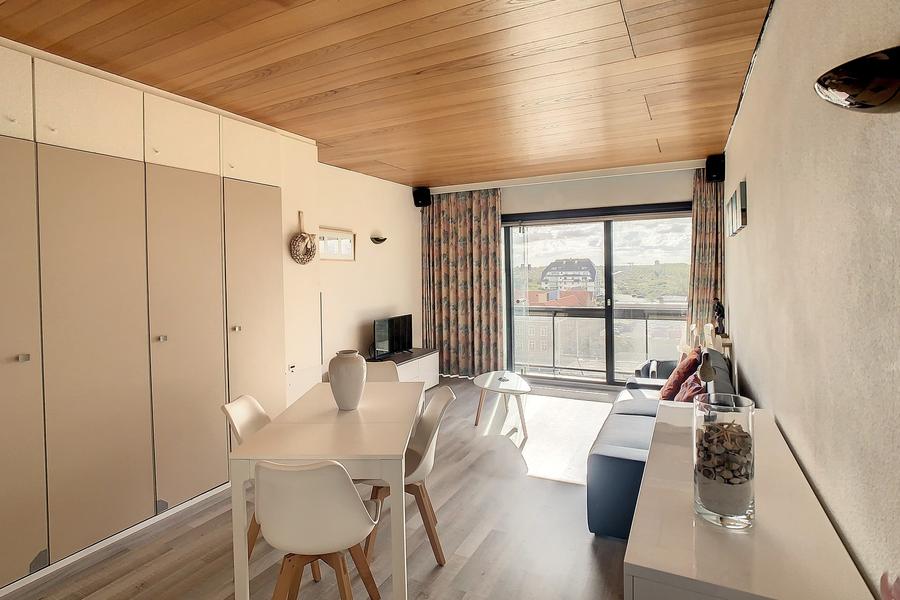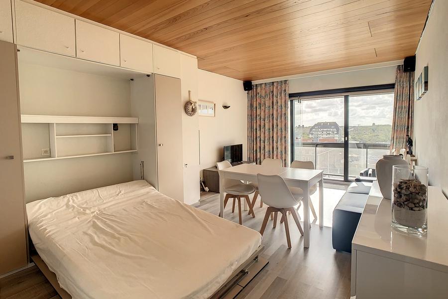 Deze gunstig gelegen studio met mooi zonneterras en open zicht op het hinterland is de uitgelezen opportuniteit om uw weekends en/of vakanties aan zee in door te brengen. Indeling: inkom met vestiaire, ingerichte keuken, zonnige woonkamer, badkamer (ligbad, wastafel, toilet en wasmachine), mooi zonneterras, private kelder en fietsenstalling. Rechtstreekse doorgang tot aan de zee en als extra pluspunt een gemeenschappelijk zwembad. De elektriciteit is in orde.
