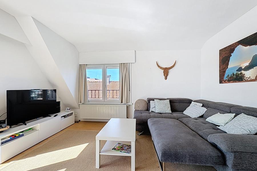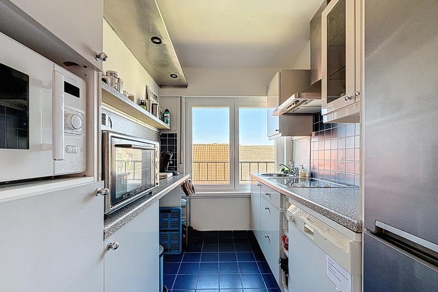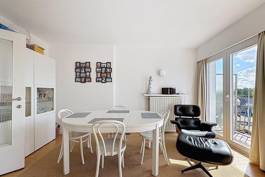 Lichtrijk appartement gelege op enkele stappen van het strand en 't Sycod. Het appartement ligt op de tweede verdieping (zonder lift) en bestaat uit: inkomhal, leefruimte met eetkamer, keuken, toilet, badkamer met wastafel en ligbad, drie slaapkamers, zongericht terras. Private berging. Ref. Kontiki 0201