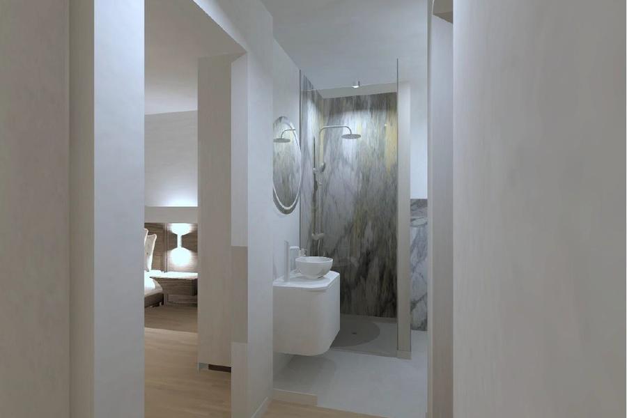 Badkamer met stijlvolle inloopdouche en lavabomeubel