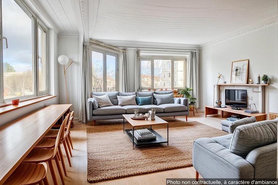 --- VENDU ----AUDERGHEM: Gelegen in de wijk Saint Julien, op een steenworp afstand van de “Chant d'oiseau”, mooi appartement met twee slaapkamers van +/- 78 m² (volgens PEB). Het bestaat uit: een inkomhal van +/- 4m², een lichte woonkamer van +/- 33m², een ingerichte keuken van +/-10m² (inductiekookplaat met geïntegreerde afzuigkap, vaatwasser, magnetron, koelkast met vriesvak en oven) die toegang geeft tot een balkon. Het slaapgedeelte bestaat uit twee slaapkamers (+/- 9 & 17m²), een douchekamer van +/- 4m² en een apart toilet. PVC ramen met dubbele beglazing, elektriciteit volgens de voorschriften. Kelder. PEB F (297kwh, 59kg CO2 m²/jaar). RU gedateerd 16/09/2024. Dicht bij de ULB, winkels en transport (HANKAR en DELTA), deze flat is ideaal voor een investering of 1e aankoop. Te ontdekken in Exclusiviteit met uw vastgoedkantoor CENTURY 21 Souverain in 02/674.21.21 specialist in verkoop - verhuur op Oudergem & Watermaal-Bosvoorde. Niet-contractuele advertentie, onder voorbehoud van wijzigingen. Afmetingen ter informatie. Al onze panden op www.century21souverain.be