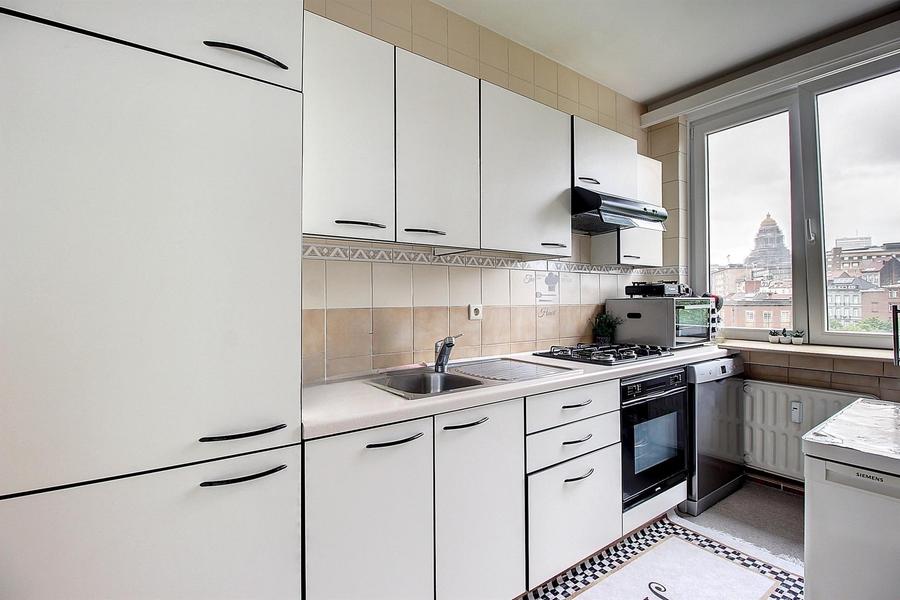 SAINT-GILLES: Idéalement situé en face du parc de la porte de Hal, à proximité des commerces, des transports et des grands axes, l'agence CENTURY 21 Wolu Way vous propose ce bel appartement de ± 75,5 m² (SIM*) logé au 6e étage s/ 12 d'un immeuble avec ascenseur. Il se compose d'un hall d'entrée, un lumineux séjour de ± 26 m² avec vue sur la porte de Hal et le Palais de Justice, une cuisine équipée, un espace buanderie, un hall de nuit avec placard, deux chambres (± 10,5 & 14 m²) et une salle de bains. Vous pourrez profiter de sa belle terrasse exposée Ouest de ± 4 m². Cave privative en sous-sol. Actuellement loué (voir conditions en agence). A visiter sans attendre. 260.000 €. PEB : E. RU consultables sur demande. CENTURY 21 Wolu Way 02 733 21 21. D'autres biens disponibles sur www.century21.be | (*surface intra-muros -> suivant le code de mesurage des surfaces applicable aux immeubles bâtis).
