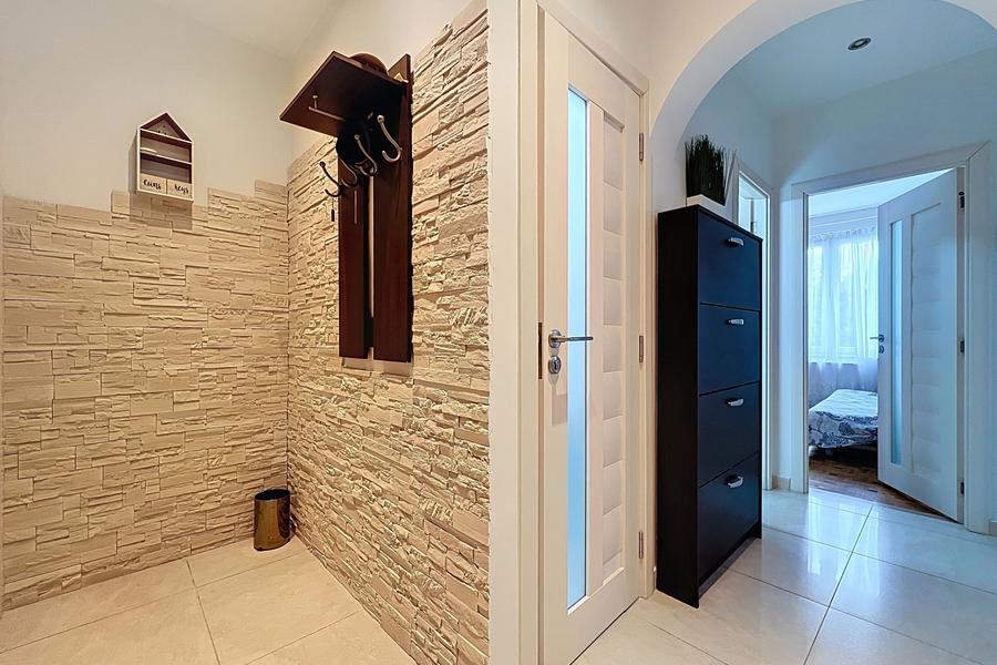 De keuken en de douchekamer werden volledig gerenoveerd in 2024, en het pand verkeert in goede algemene staat, klaar om zijn nieuwe bewoners te verwelkomen. Het bestaat uit een ruime woonkamer, een ingerichte keuken, een inkomhal die toegang geeft tot twee slaapkamers, elk met een dressing, een badkamer en een apart toilet.