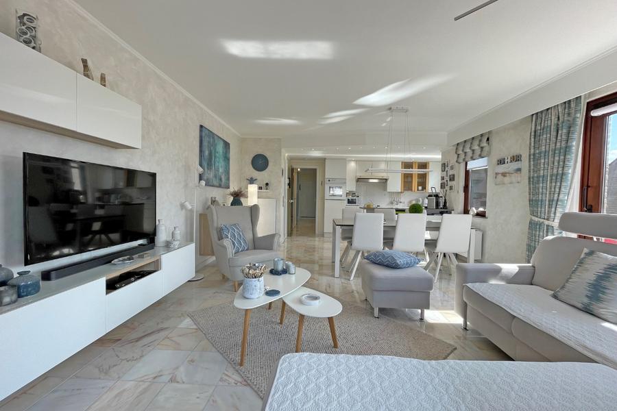 Instapklaar appartement met uiterst gunstige ligging, op 300m van het strand en vlak aan de duinen. Het appartement bestaat uit: inkomhal, ingerichte keuken, living met eetkamer, twee terrassen, twee slaapkamers, een badkamer met ligbad, douche en dubbele wastafel, berging en gemeenschappelijke fietsenberging. Mogelijkheid tot aankoop ruime garage (3,47m x 9,9m) in de residentie (65.000 euro). Ref. Meidoorn 0202